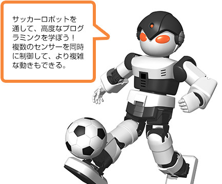 サッカー競技を通じて、サッカーロボットに必要なメカニズム、中級プログラミング、プレゼンテーション手法などを学習します。